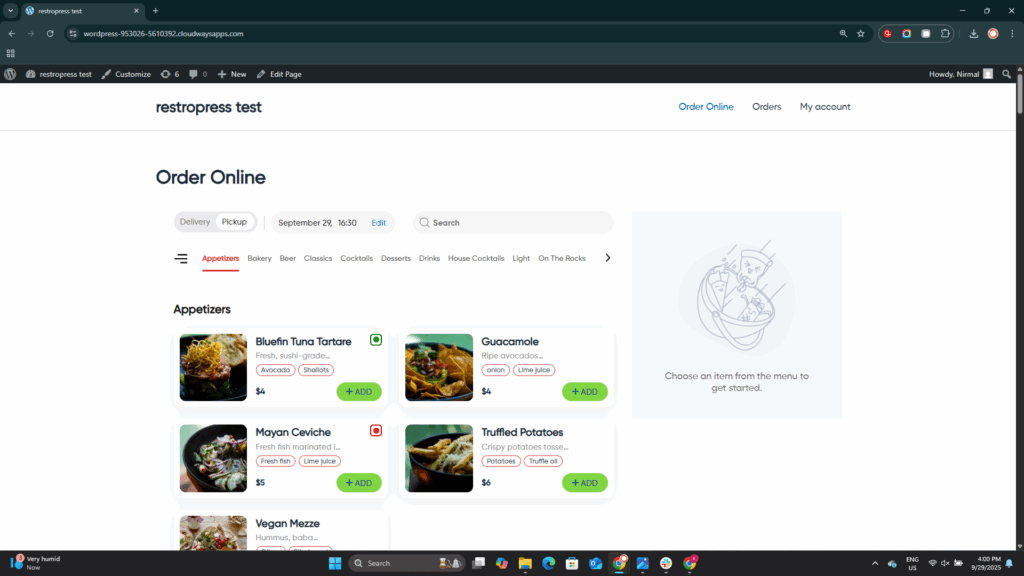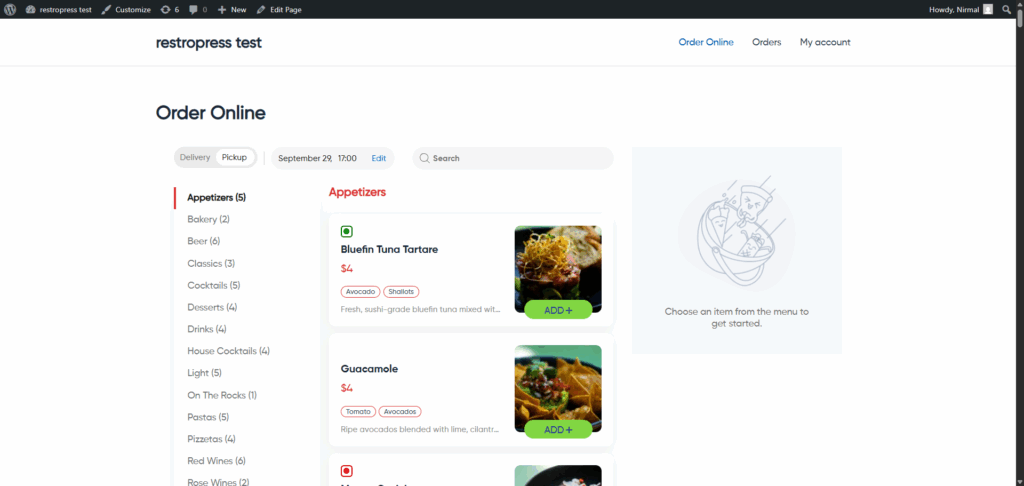 • Food Item Template: Here, you can use your required template, List or Grid.